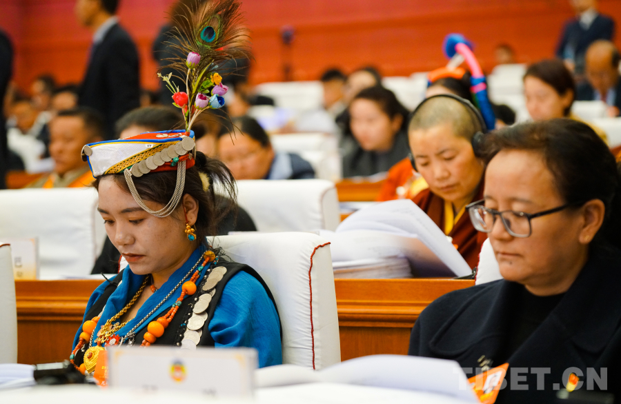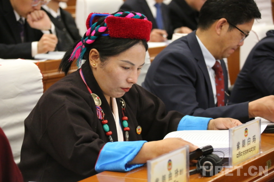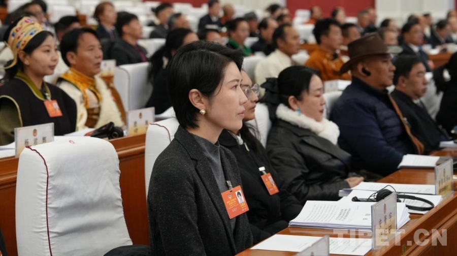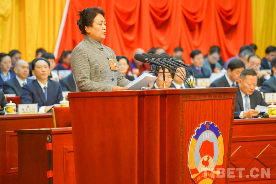 圖為受政協(xié)第十二屆西藏自治區(qū)委員會常務(wù)委員會委托,西藏自治區(qū)政協(xié)黨組成員、副主席卓嘎向大會報告政協(xié)十二屆二次會議以來的提案工作情況 攝影:趙振宇