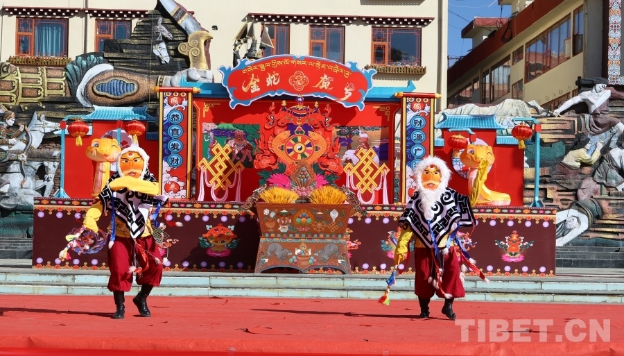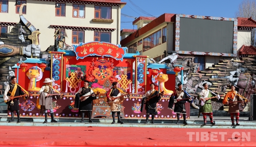 中國(guó)西藏網(wǎng)訊 1月30日,四川省甘孜藏族自治州理塘縣以“春到萬(wàn)家·感恩奮進(jìn)”為主題,在新時(shí)代文明實(shí)踐廣場(chǎng)舉辦春節(jié)、藏歷新年文藝匯演,吸引了上千居民群眾“趕場(chǎng)”觀看。