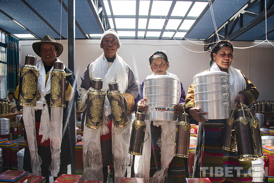 “因受地震的影響,今年的分紅儀式與以往相比簡(jiǎn)單一些。我們村兩委經(jīng)過(guò)商議,決定用今年的村集體收入為每戶購(gòu)置多功能蒸鍋、銅壺等作為‘分紅’。一方面,因?yàn)榇蠹椰F(xiàn)在都在安置板房里生活,這些物品對(duì)于村民來(lái)說(shuō)實(shí)用性更強(qiáng);另一方面,銅壺也有一定的裝飾作用,為村民簡(jiǎn)單的板房?jī)?nèi)增添了一份像樣的‘家具’。”村黨支部書記旺加布說(shuō)。