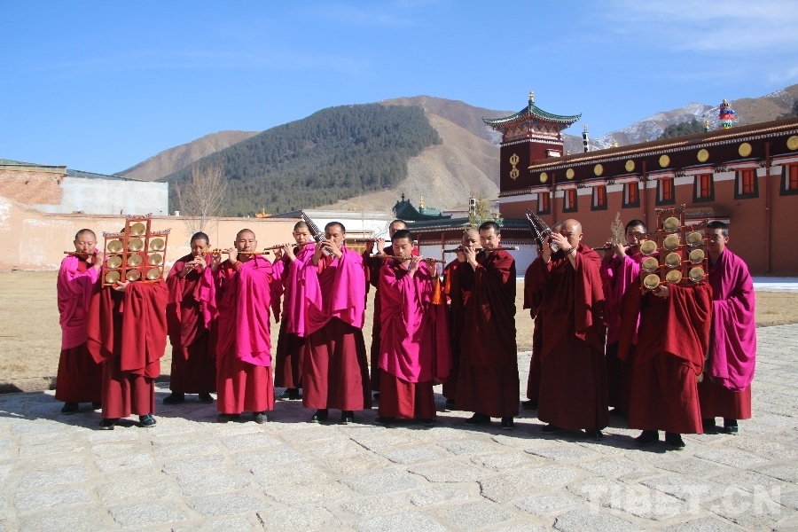 拉卜楞寺被譽為“世界藏學府”,位于甘肅省甘南藏族自治州夏河縣。道得爾是拉卜楞寺唯一的佛殿音樂,2008年被列入國家級非物質文化遺產名錄。拉卜楞寺道得爾佛樂團,由二世嘉木樣·久美旺吾創(chuàng)立,至今已有近300年歷史,期間不斷發(fā)展完善,最終形成了由管樂、打擊樂、弦樂組成的藏族佛殿音樂,在寺院佛事活動中起伴奏作用。