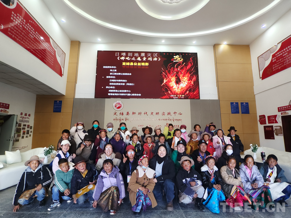 圖為“壹加壹·新時代愛心”兒童之家?guī)ьI(lǐng)楚卡村兒童觀看《哪吒2》