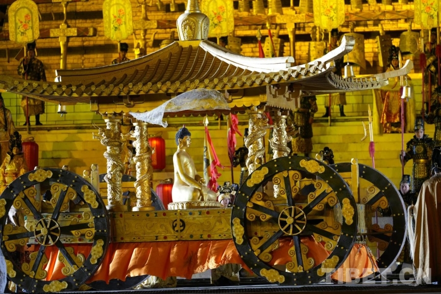 圖為《文成公主》大型實(shí)景劇中文成公主入藏,將釋迦牟尼12歲等身像帶到拉薩的場(chǎng)景。攝影:德吉卓瑪