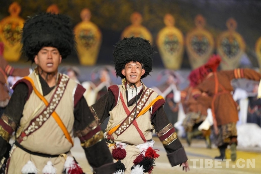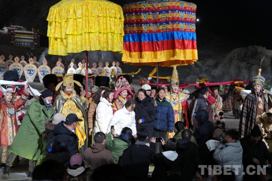圖為《文成公主》大型實(shí)景劇中群眾演員表演藏戲。攝影:德吉卓瑪