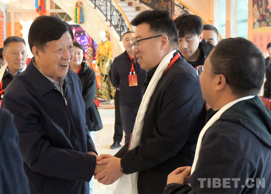 圖為金書(shū)波歡迎西藏自治區(qū)民營(yíng)企業(yè)家學(xué)習(xí)參觀團(tuán)抵京