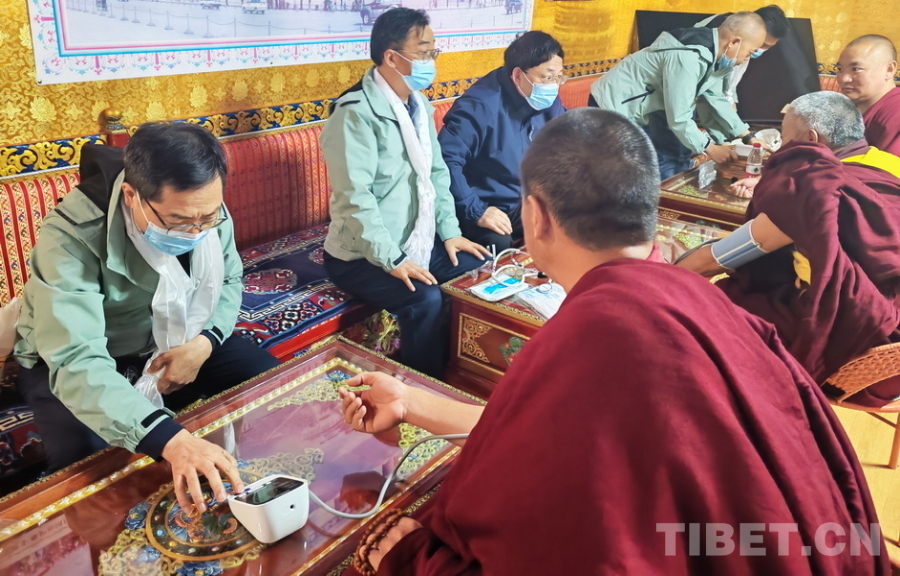 除在沙爾宗鎮(zhèn)衛(wèi)生院設(shè)立固定義診點(diǎn),醫(yī)療專家們還深入鄉(xiāng)村,為行動(dòng)不便的老人等進(jìn)行入戶慰問(wèn)巡診;來(lái)到大藏寺,為寺內(nèi)僧人送醫(yī)送藥。