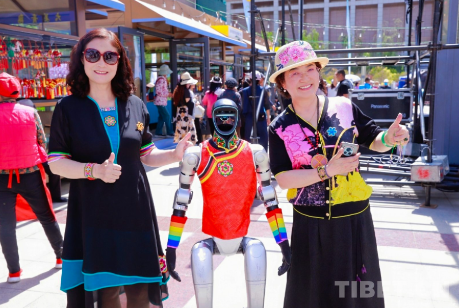 圖為民眾與身著傳統(tǒng)服飾的機(jī)器人熱情合影 青海省文化和旅游廳供圖