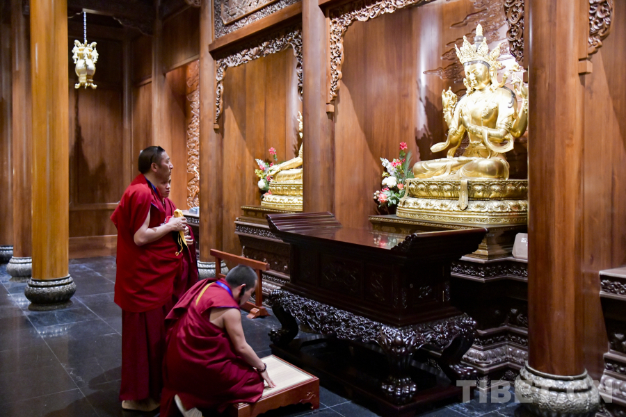 圖為在普陀山觀音法界內(nèi)西藏佛學院學員了解不同的觀音文化 攝影:趙振宇