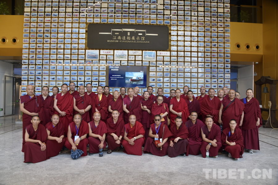 圖為西藏佛學(xué)院師生在上海江南造船廠合影,了解“中國第一船廠”到“航母搖籃”的發(fā)展歷史 攝影:趙振宇