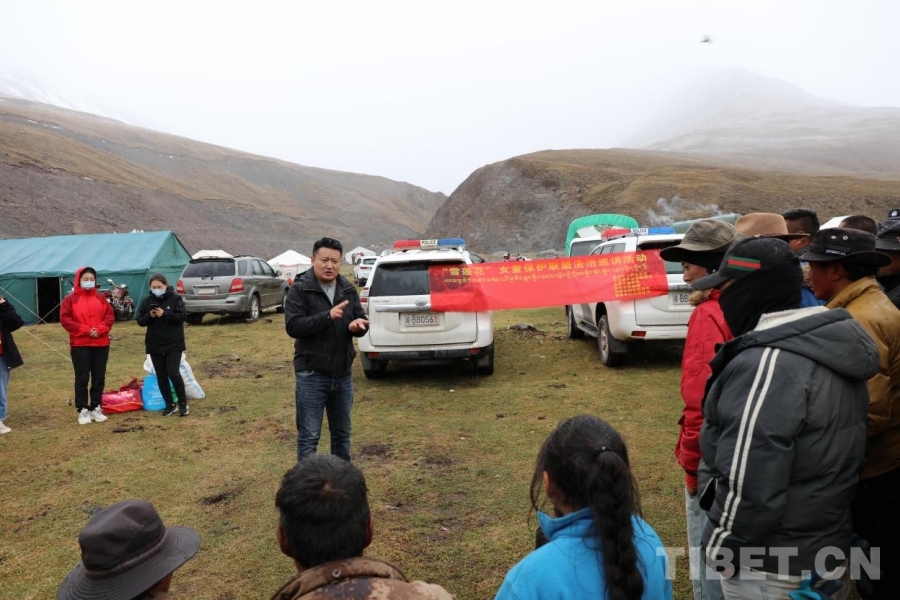 圖為2022年6月14日,昌都市“雪蓮花”女童保護(hù)聯(lián)盟深入丁青縣蟲(chóng)草采挖點(diǎn)開(kāi)展法治巡講活動(dòng)