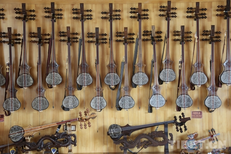 作為“堆諧之鄉(xiāng)”拉孜縣的代表性樂器,扎念琴制作已有數(shù)百年歷史。合作社負(fù)責(zé)人頓加介紹,一把純手工扎念琴需選用楊木做共鳴箱、花梨木制琴桿,經(jīng)過刨削、雕鏤、蒙皮等20余道工序,一個人耗時6天左右方能完成?!扒兕^雕馬象征吉祥,背面‘巴絡(luò)'凸紋既美觀又防滑,這些都是祖輩傳下的智慧?!比缃?,這項(xiàng)非遺技藝通過“致富帶頭人+合作社+農(nóng)戶”模式,年生產(chǎn)扎念琴超500把,帶動社員人均年收入達(dá)4.5萬元。