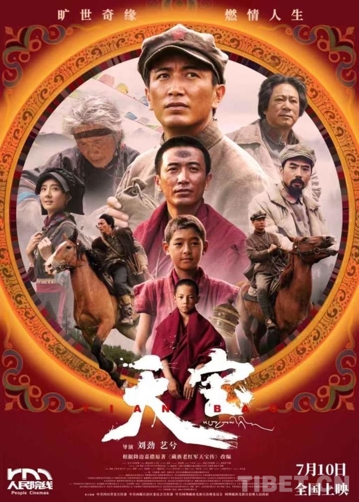 電影《天寶》改編自作家降邊嘉措的傳記文學作品《藏族老紅軍天寶傳》,影片以天寶(原名桑吉悅希)從少年到中年時代的真實經(jīng)歷作為創(chuàng)作素材,全景式講述了桑吉悅希從僧人,到參加紅軍、三過草地,在延安中央黨校民族班學習期間被毛澤東主席改名為“天寶”,后又參加和平解放西藏等,歷經(jīng)千錘百煉和血與火的洗禮,最終成為中國共產(chǎn)黨的優(yōu)秀黨員、忠誠的共產(chǎn)主義戰(zhàn)士的革命英雄事跡。