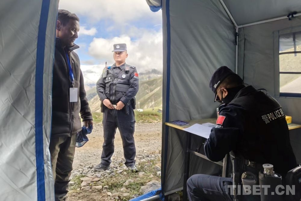 圖為吉隆出入境邊防檢查站民警正在貢當(dāng)傳統(tǒng)邊貿(mào)點(diǎn)登記入境邊民信息 攝影:向巴澤平