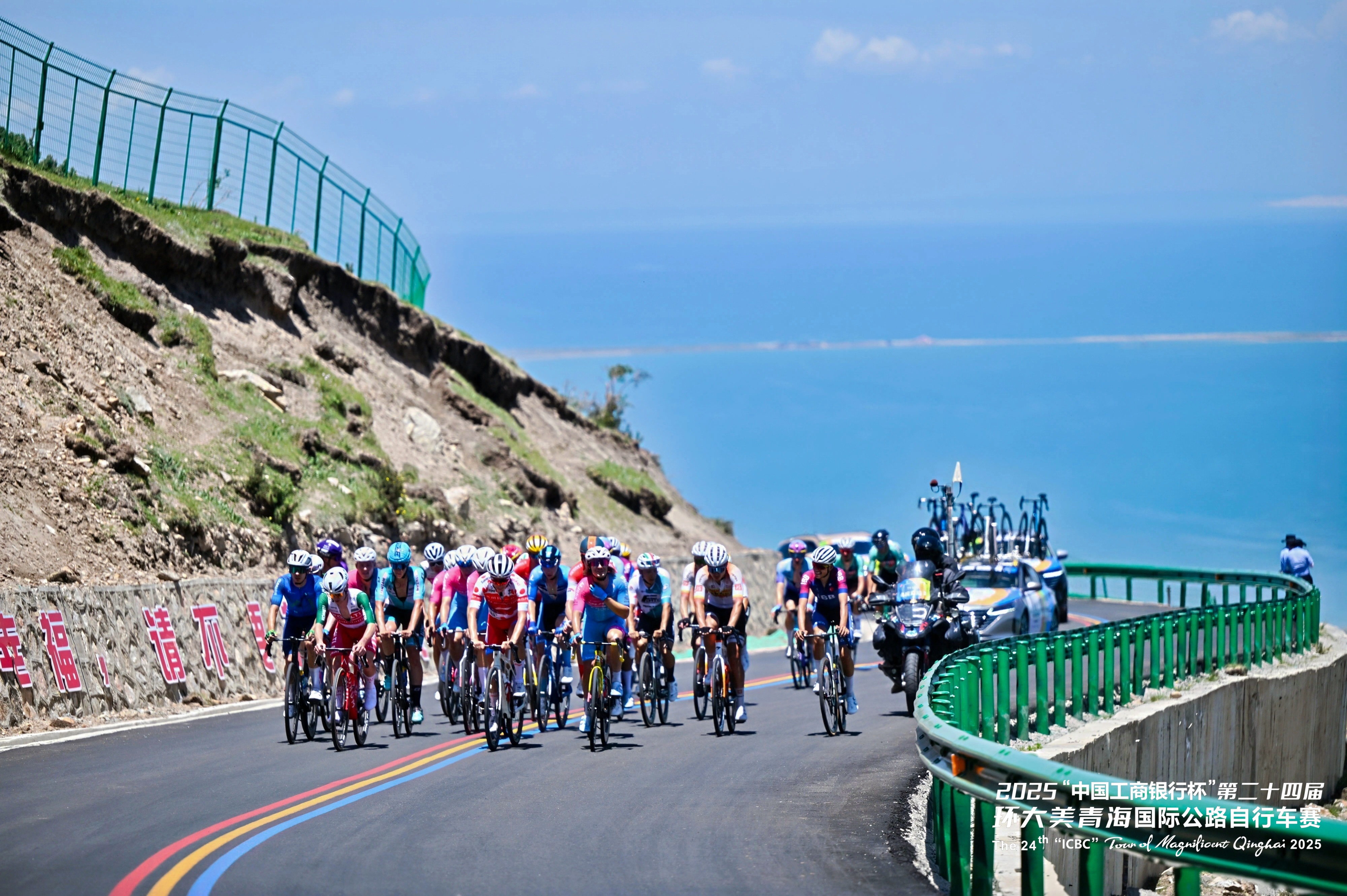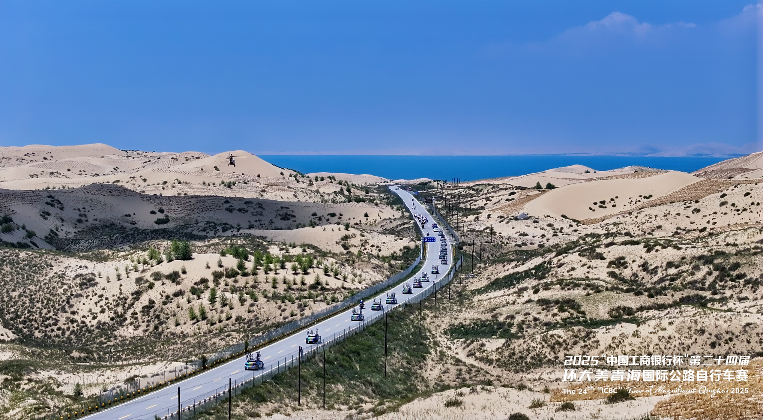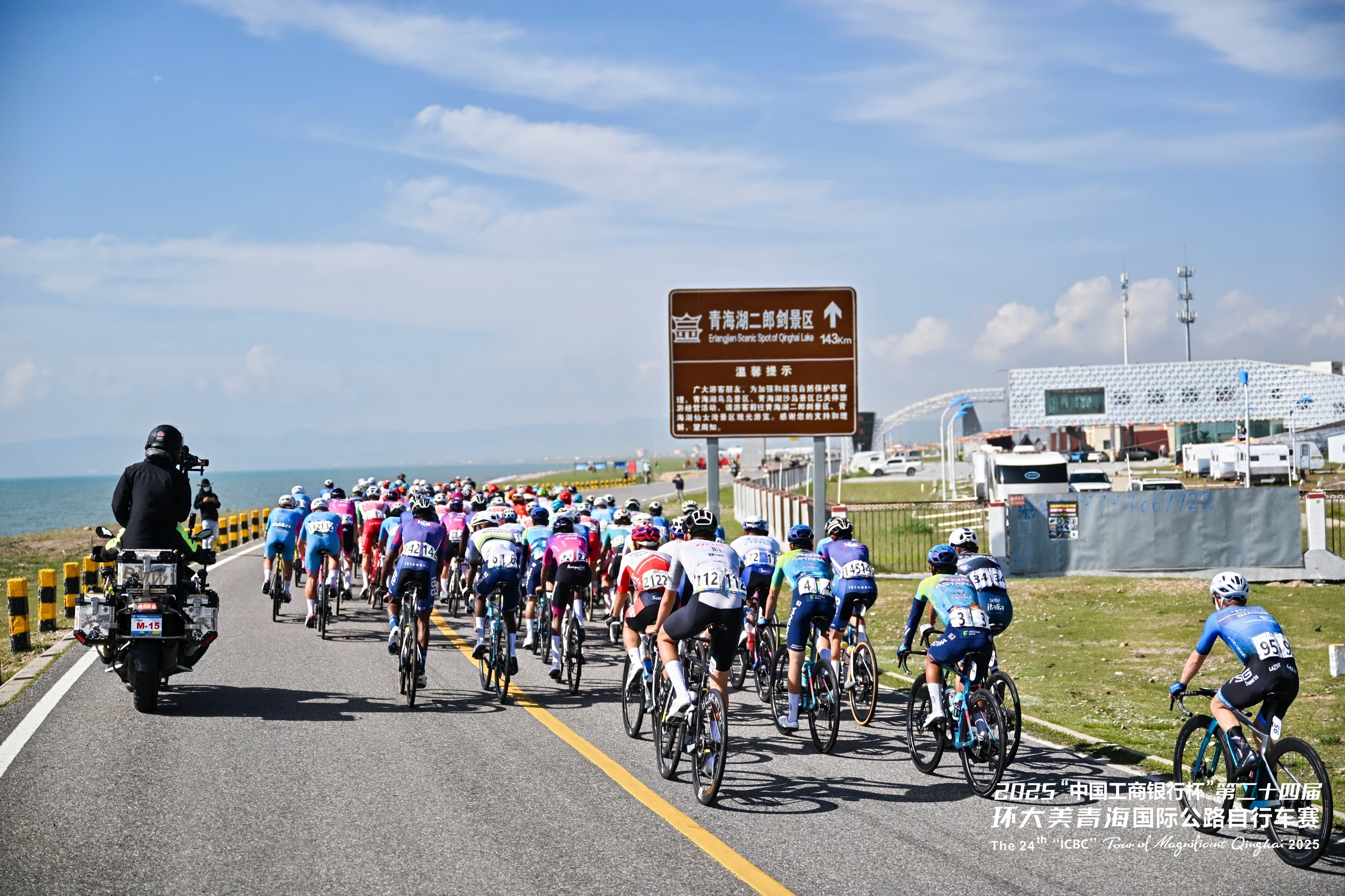 第二十四屆環(huán)青賽第六賽段——?jiǎng)偛?共和賽段,是本屆賽事距離最長(zhǎng)的賽段。車隊(duì)出發(fā)后不久便駛?cè)胫沫h(huán)湖公路,這段標(biāo)志性賽程承載著環(huán)青海湖賽事的精髓和回憶。作為環(huán)青賽的前身,環(huán)湖賽段以其獨(dú)特魅力吸引著全球騎行愛好者,人們沿著賽事路線打卡騎行,盡情領(lǐng)略青海湖畔的壯美風(fēng)光。