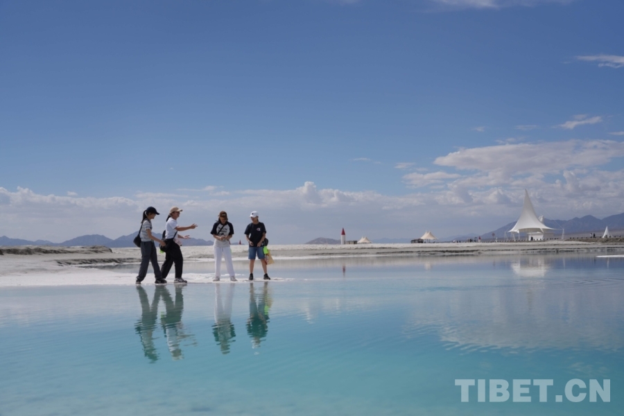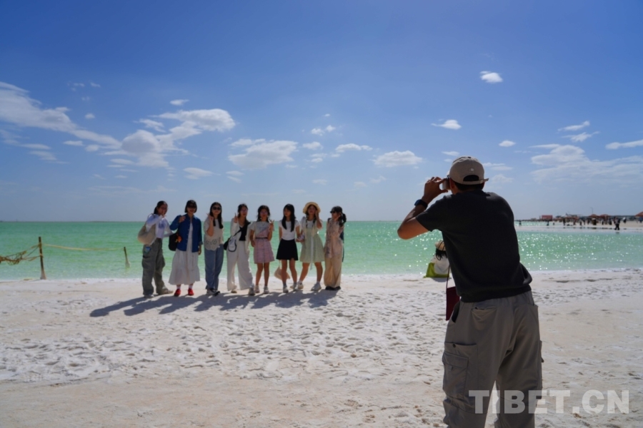 在海西蒙古族藏族自治州格爾木市,海拔2670米的察爾汗鹽湖,翠綠之美令人震撼,風(fēng)起波動(dòng),湖面如碎鉆鋪就的星河;天然形成的鹽花形態(tài)各異宛如珊瑚叢生,在陽光下,閃耀著璀璨的光芒;浮在鹵水上的“萬丈鹽橋”延伸至天際,橫跨湖面,還有周邊的現(xiàn)代化采鹽船,輸鹵管道,車來車往,工業(yè)設(shè)施與自然景觀形成強(qiáng)烈對(duì)比。來自妙法寺劉金龍中學(xué)三位女生欣賞著美景,也紛紛討論這次令人驚嘆的“自然課堂”。鐘澄情同學(xué)不自禁感慨:“這里跟網(wǎng)上宣傳的一樣美!就像是上帝打翻的蘋果汁?!痹袂缤瑢W(xué)驚嘆道:“曾經(jīng)我只聽說過茶卡鹽湖,來到這里才知道察爾汗鹽湖是中國最大、世界第二大的鹽湖,面積相當(dāng)于56個(gè)茶卡鹽湖,鹽儲(chǔ)量可以讓全球80億人吃上兩千年。”而許馨月同學(xué)更加震撼這里工業(yè)與自然相互交融的獨(dú)特魅力,直呼這是一座真正的“寶庫”!