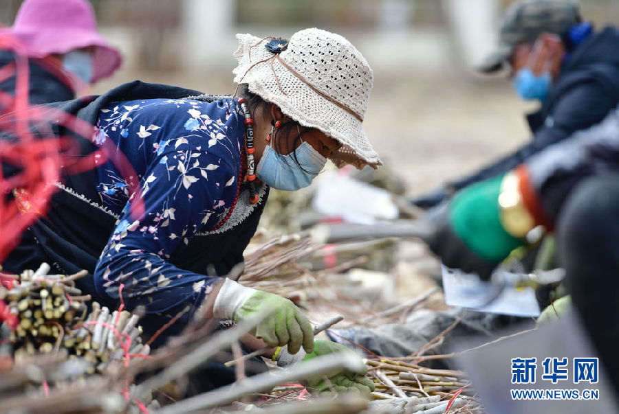 在青海省玉樹藏族自治州高原千畝林木良種繁育實驗基地,當?shù)厝罕娫谇げ逵纾?月29日攝)。新華社記者 張龍 攝