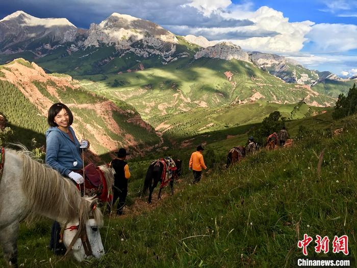 圖為2018年8月,劉馨濃(左)與接待家庭向?qū)円黄鹪O計騎馬線路。 中新社發(fā) 山水自然保護中心 供圖