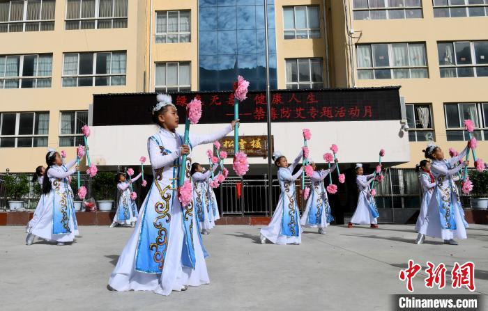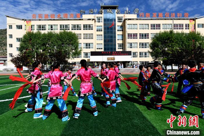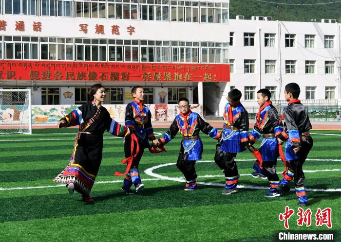 學(xué)生在跳藏族鍋莊舞?!“苍?攝