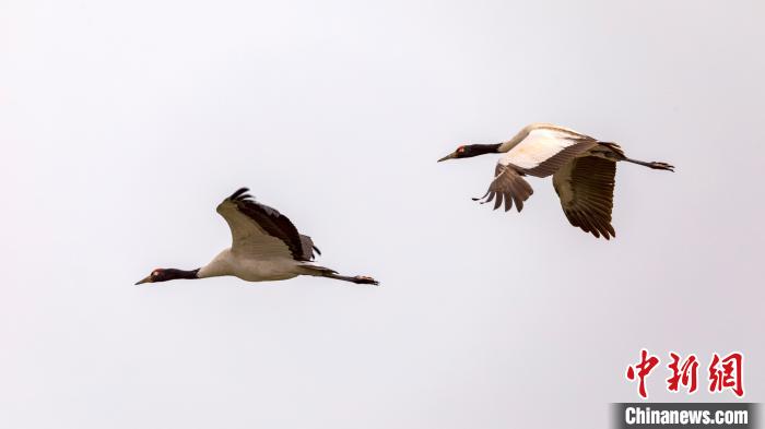展翅飛翔的黑頸鶴。若爾蓋宣傳部供圖 攝