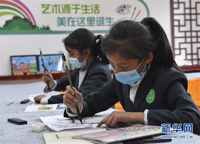 四川省阿壩藏族羌族自治州九寨溝縣九寨溝小學(xué)(原漳扎鎮(zhèn)小學(xué))的學(xué)生在上國畫課(6月18日攝)。 新華社記者 劉坤 攝