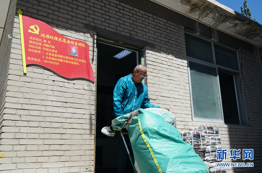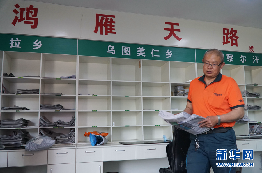6月29日,中國郵政集團有限公司格爾木市分公司的郵件分揀大院里,葛軍在整理報紙。新華社記者 耿輝凰 攝
