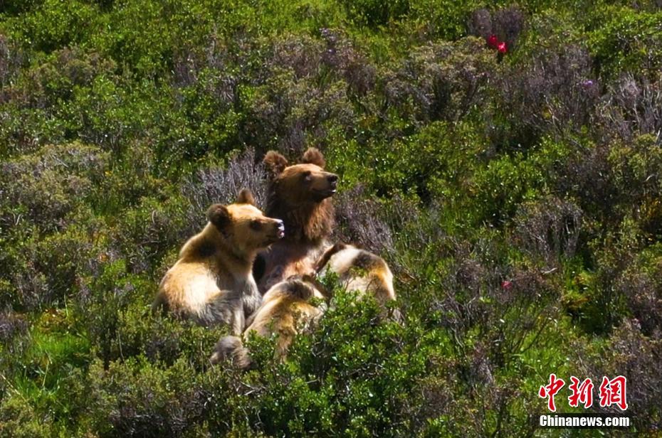 7月13日下午,記者下鄉(xiāng)采訪途中,在海拔4500米的四川省甘孜藏族自治州石渠縣蒙宜鎮(zhèn)蒙格村附近一處水草豐茂的山坡處拍攝時(shí),偶然發(fā)現(xiàn)一只棕熊媽媽曬著陽光浴給三只小熊喂奶場(chǎng)景,棕熊媽媽喂奶結(jié)束后領(lǐng)著小熊寶寶們緩慢走向大山深處。
