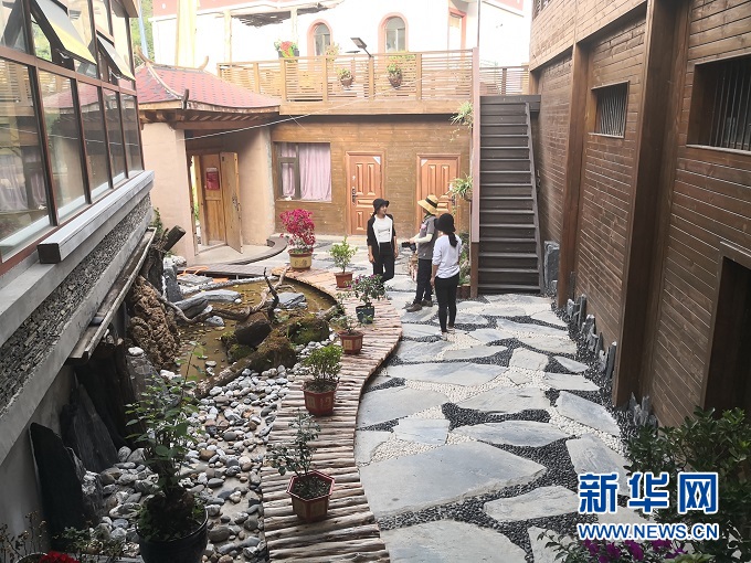 傍晚時(shí)分走進(jìn)高吉村,錯(cuò)落有致的民宿散落山間,落地窗透出暖黃色的燈光。房間里藏式床鋪與原生態(tài)家具相映成趣,靠窗的榻上擺放著茶幾、茶具、綠植,一覽無(wú)余的窗外夕陽(yáng)半落、云飛鳥散。游客接待中心也一改傳統(tǒng)樣式,樓上是純木質(zhì)、開放式餐廳,樓下是小橋流水、曲徑通幽的水景,游客們?nèi)齼蓛傻暮戎Х龋硎苤?shī)意的人生。