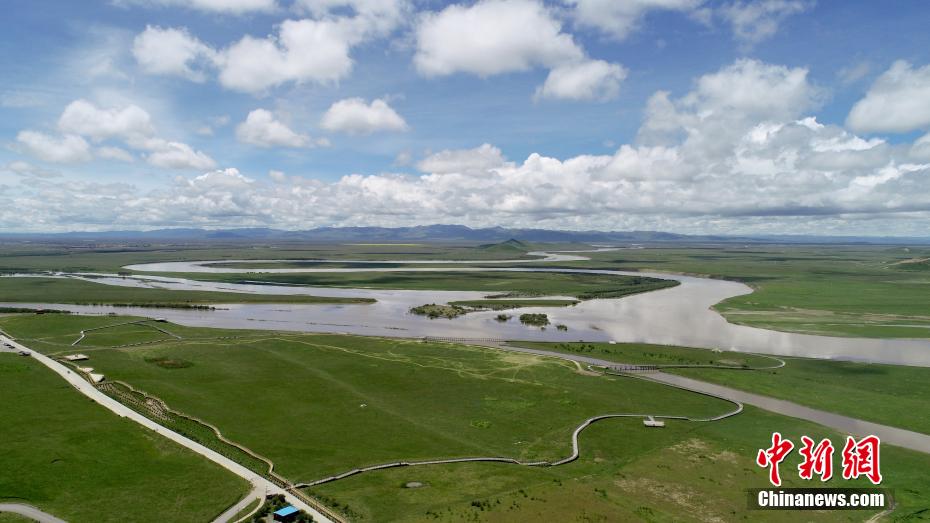 黃河九曲第一灣位于四川省阿壩藏族羌族自治州若爾蓋縣唐克鎮(zhèn),此處是四川、青海、甘肅三省交界處,黃河水在這里形成一個巨大的回灣,被稱為黃河九曲第一灣。黃河和白河將這里的草原分割成無數(shù)河州、小島,水鳥翔集,澄河蜿蜒曲折,清澈的河流水勢平緩,藍天白云,綠草繁花,帳篷炊煙,牛羊駿馬,盤旋的雄鷹,如詩如畫,氣象萬千。