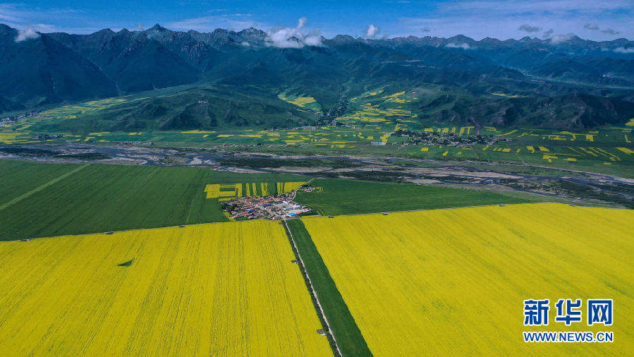 這是7月22日拍攝的門源回族自治縣的油菜花田(無人機(jī)照片)。新華社記者 吳剛 攝