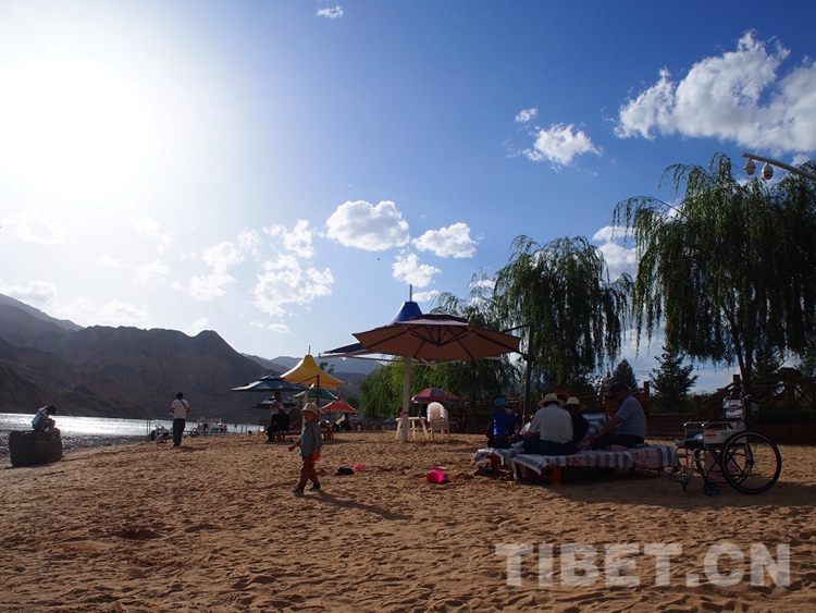 這下,村民們可忙壞了,有的開(kāi)辦了農(nóng)家樂(lè),有的在美食廣場(chǎng)經(jīng)營(yíng)土燒饃、酸奶、糌粑、釀皮等當(dāng)?shù)靥厣嬍?。德吉村從一個(gè)不知名的荒沙灘,華麗轉(zhuǎn)身成為青海省文化旅游的一張新名片,被游客稱(chēng)為青海“小三亞”。