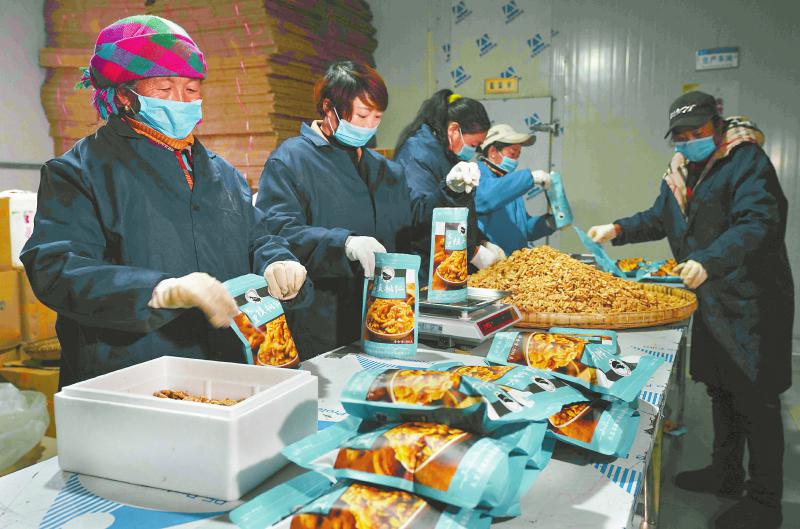 在涼山州木里縣藏祥閣農(nóng)特產(chǎn)品商貿(mào)有限公司,工人們正在熟練地為核桃裝袋。近年來,通過電商銷售,木里的農(nóng)特產(chǎn)品成為網(wǎng)上暢銷商品,既為農(nóng)民脫貧、增收開拓了新路,又滿足了現(xiàn)代人對(duì)農(nóng)村原生態(tài)農(nóng)產(chǎn)品的消費(fèi)需求。尹鋼 攝(資料圖片)