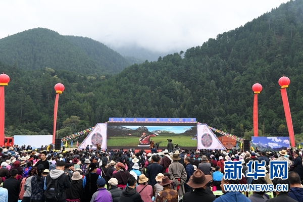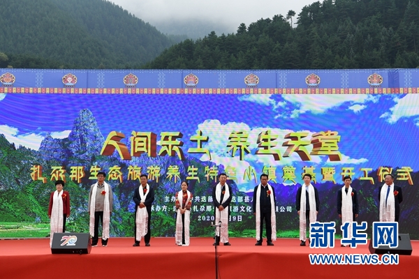 這是9月9日在甘南藏族自治州迭部縣拍攝的扎尕那生態(tài)旅游養(yǎng)生特色小鎮(zhèn)開工儀式現(xiàn)場(chǎng)。 新華社記者 范培珅 攝
