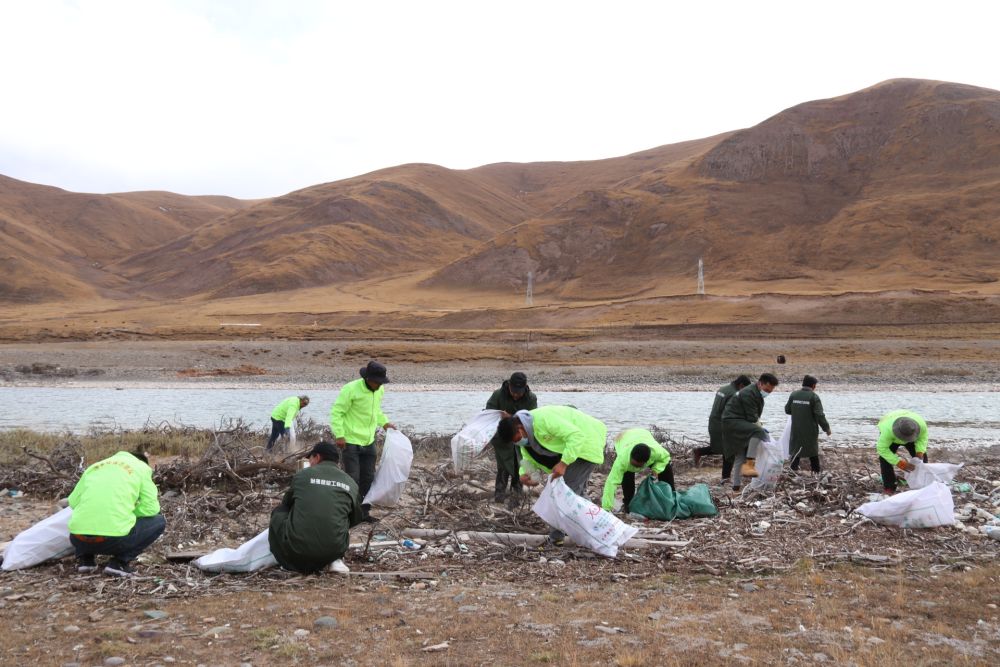 高原冬日,青海省玉樹(shù)藏族自治州治多縣多彩鄉(xiāng)境內(nèi),遠(yuǎn)處巍峨的雪山腳下,廣袤的草原早已褪去青色,許多綠色的身影活躍在草地上,一個(gè)個(gè)遺棄的塑料瓶、食品袋被他們撿起,寂靜的草原變得生動(dòng)起來(lái)。