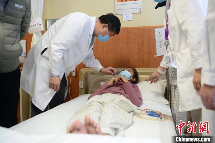 近日,一對來自青海玉樹、患肝包蟲病的姐弟在北京接受免費手術(shù)治療。手術(shù)由中國工程院院士、北京清華長庚醫(yī)院院長董家鴻親自主刀。圖為董家鴻院士為患者查房,了解病情?!巴摹す茶T中國心”基金 供圖 中新社 發(fā) “同心·共鑄中國心”基金 攝