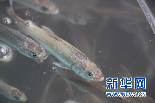 這是青海湖裸鯉魚苗(6月6日攝)。新華社記者 周喆 攝