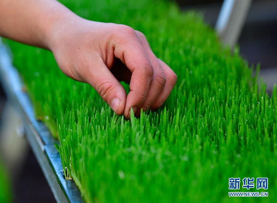 1月13日,在青海省果洛藏族自治州農牧業(yè)生態(tài)科技示范園,工作人員在查看牧草生長情況。 新華社記者 張龍 攝