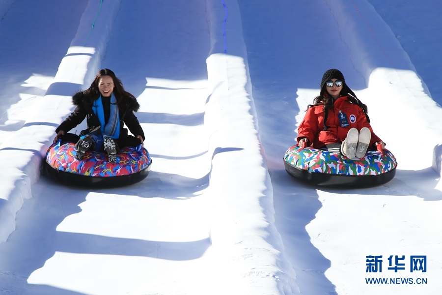 活動(dòng)現(xiàn)場(chǎng),游客正在體驗(yàn)冰雪娛樂項(xiàng)目。新華網(wǎng) 馬洪婷 攝