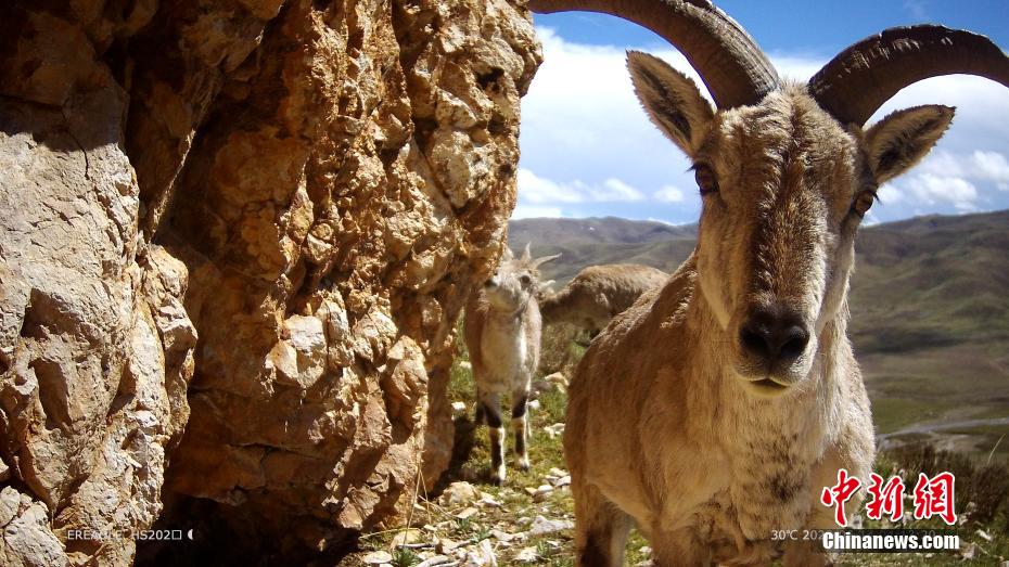 圖為相機(jī)抓拍到的巖羊活動畫面。 青海原上草自然保護(hù)中心供圖