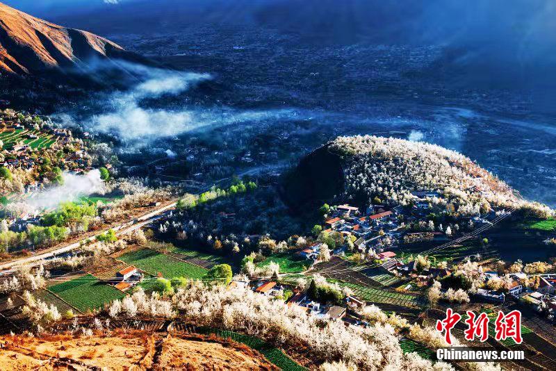 四川省甘孜州丹巴縣:“梨花藏寨”繪就詩意般的春色畫卷