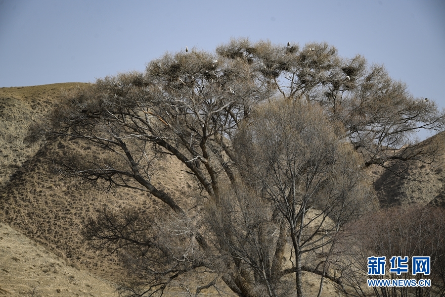 春暖花開,候鳥回歸。隨著天氣的轉(zhuǎn)暖,數(shù)十只蒼鷺在青海省海南藏族自治州貴德縣河?xùn)|鄉(xiāng)的一棵百年楊樹上安家筑巢。