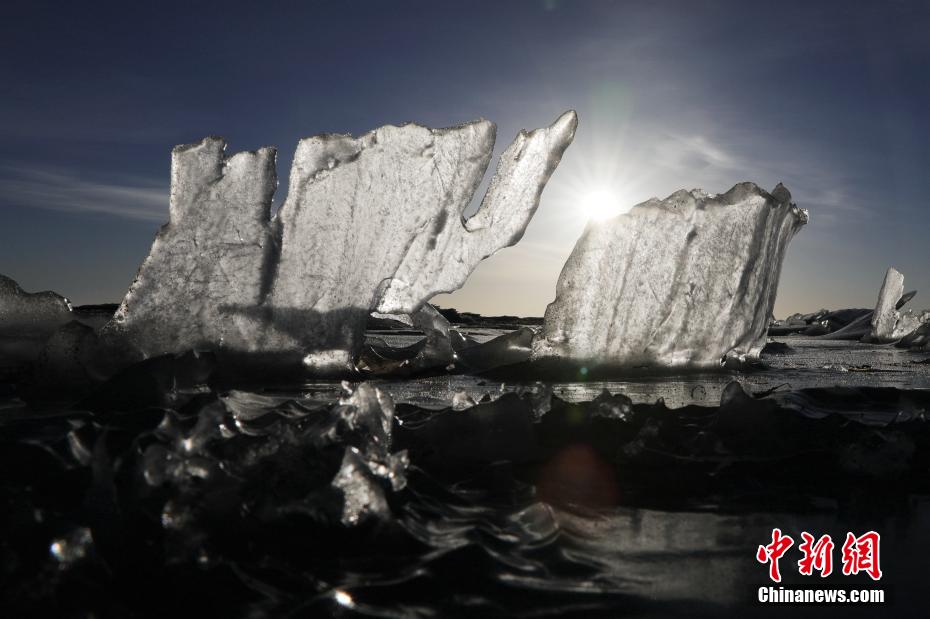 圖為3月27日青海湖黑馬河附近的冰面出現(xiàn)大量浮冰。劉錦秀 攝