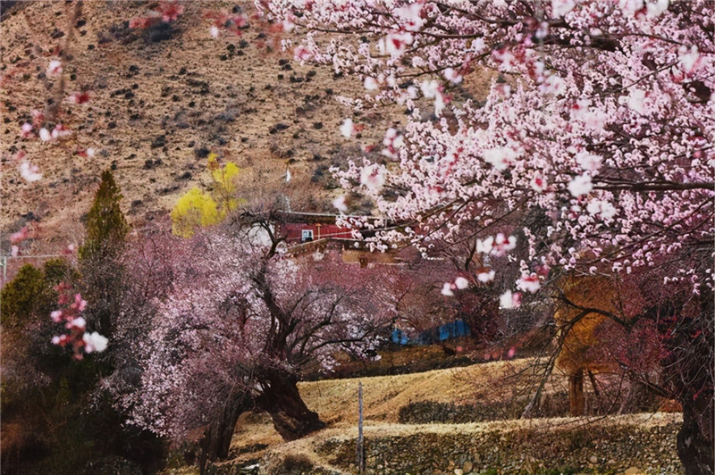 四川省得榮縣:桃花恣意綻放 美成人間仙境
