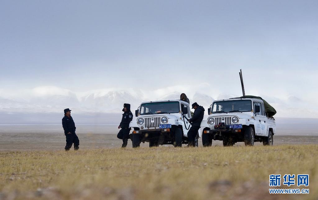 2016年12月1日,袁廣明(右一)和隊員在可可西里巡山途中。新華社記者 吳剛 攝
