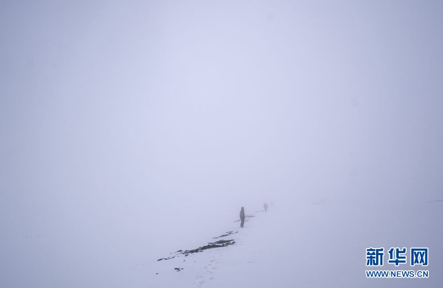4月23日,祁連山國(guó)家公園沙龍灘管護(hù)站的生態(tài)管護(hù)員冒雪徒步巡護(hù)。新華社記者 費(fèi)茂華 攝