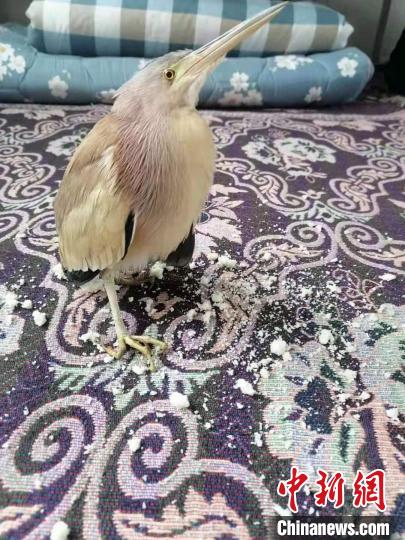 圖為被救助的黃斑葦鳽?!√炀h融媒體中心 供圖