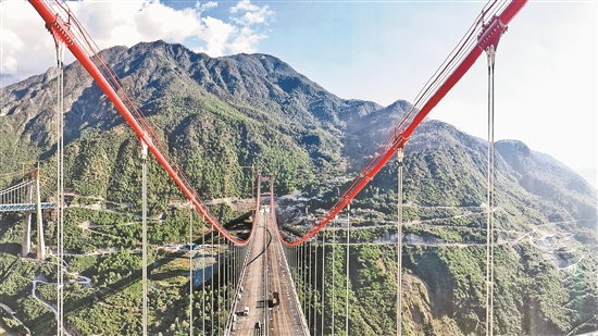 香麗高速虎跳峽金沙江特大橋首個(gè)索鞍吊裝成功