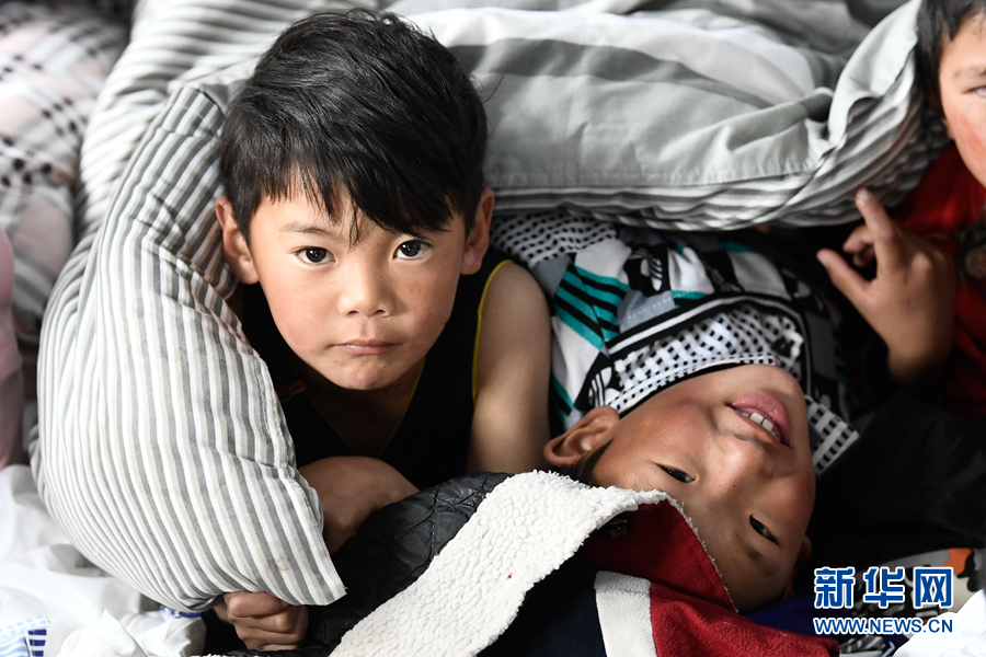 5月22日,在瑪多縣黃河鄉(xiāng)寄宿制學(xué)校救災(zāi)安置點(diǎn),孩子們在休息。新華社記者 張龍 攝