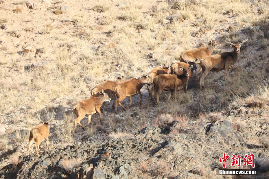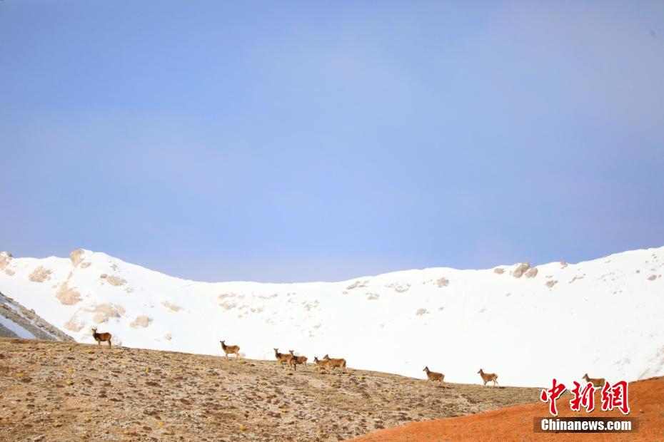近日,甘肅張掖市祁連山國家公園內(nèi)野生動(dòng)物“組團(tuán)”出沒的難得一見畫面。郎文瑞 攝