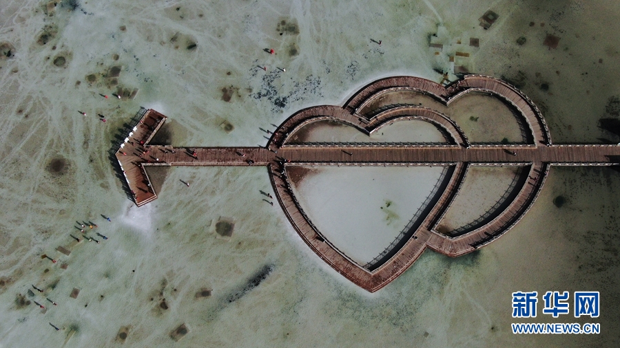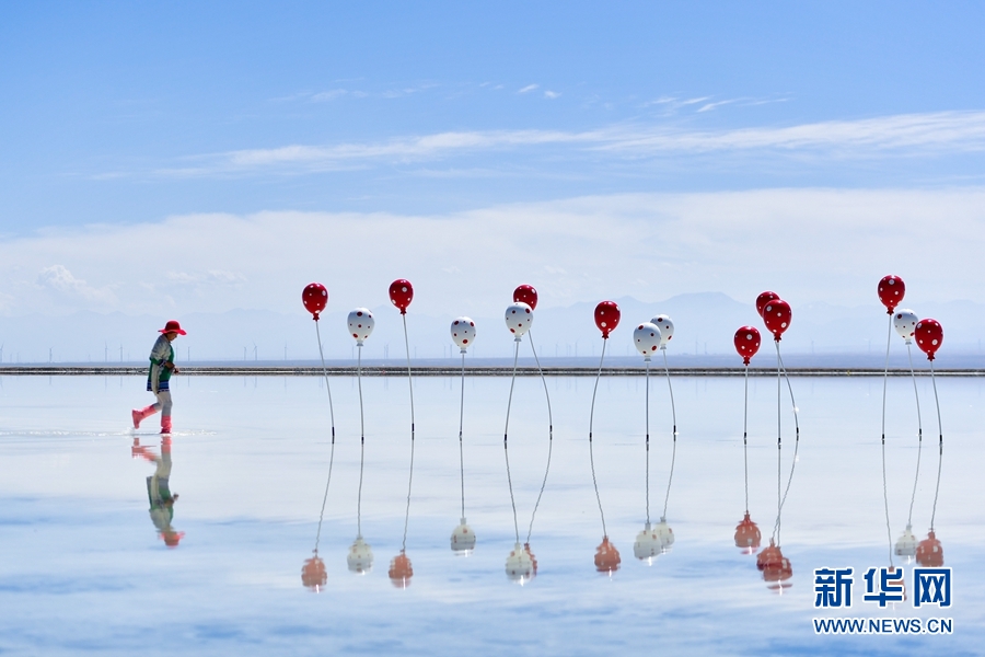 這是2020年9月23日拍攝的茶卡鹽湖“天空之鏡”景區(qū)一角(無人機(jī)照片)。新華社記者張龍攝