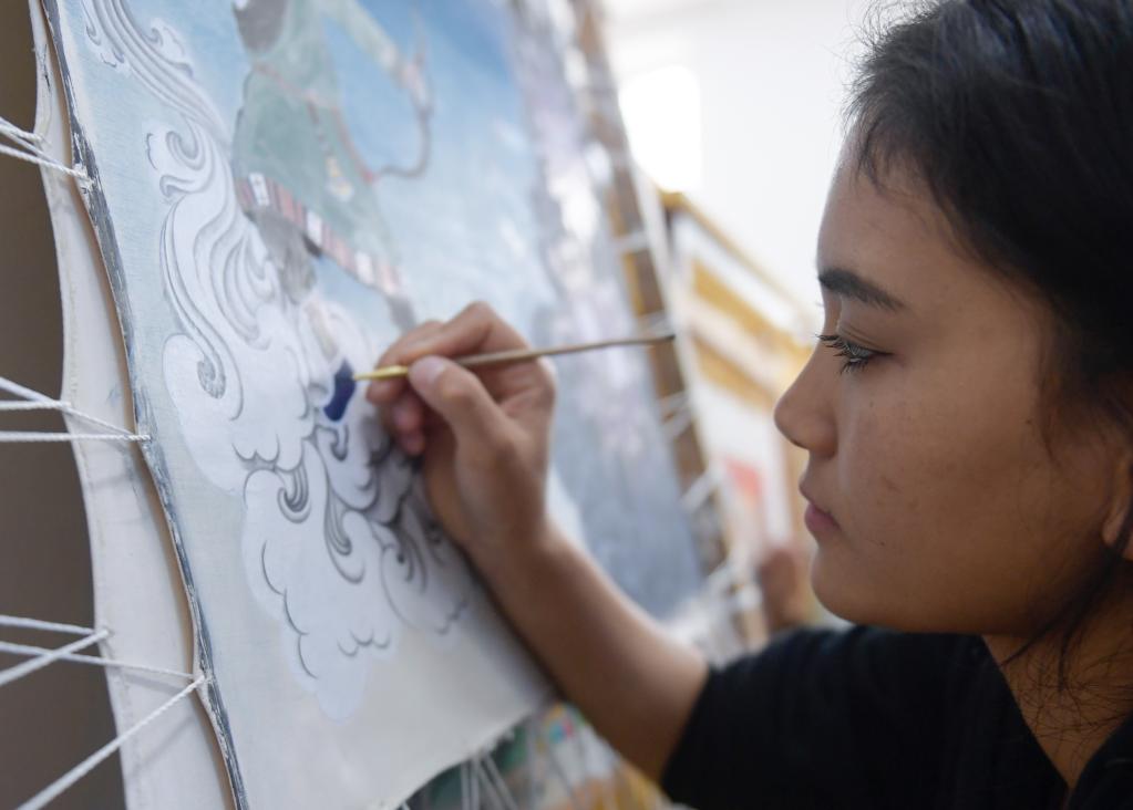 青海高校少數(shù)民族畢業(yè)生展出唐卡作品致敬母校