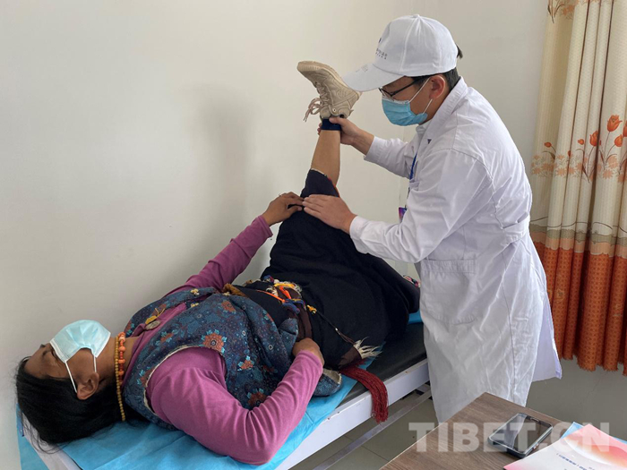 圖為石少輝大夫現(xiàn)場檢查患者癥狀(組委會(huì)供圖)